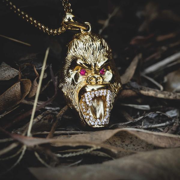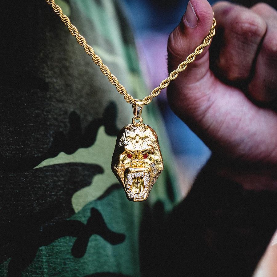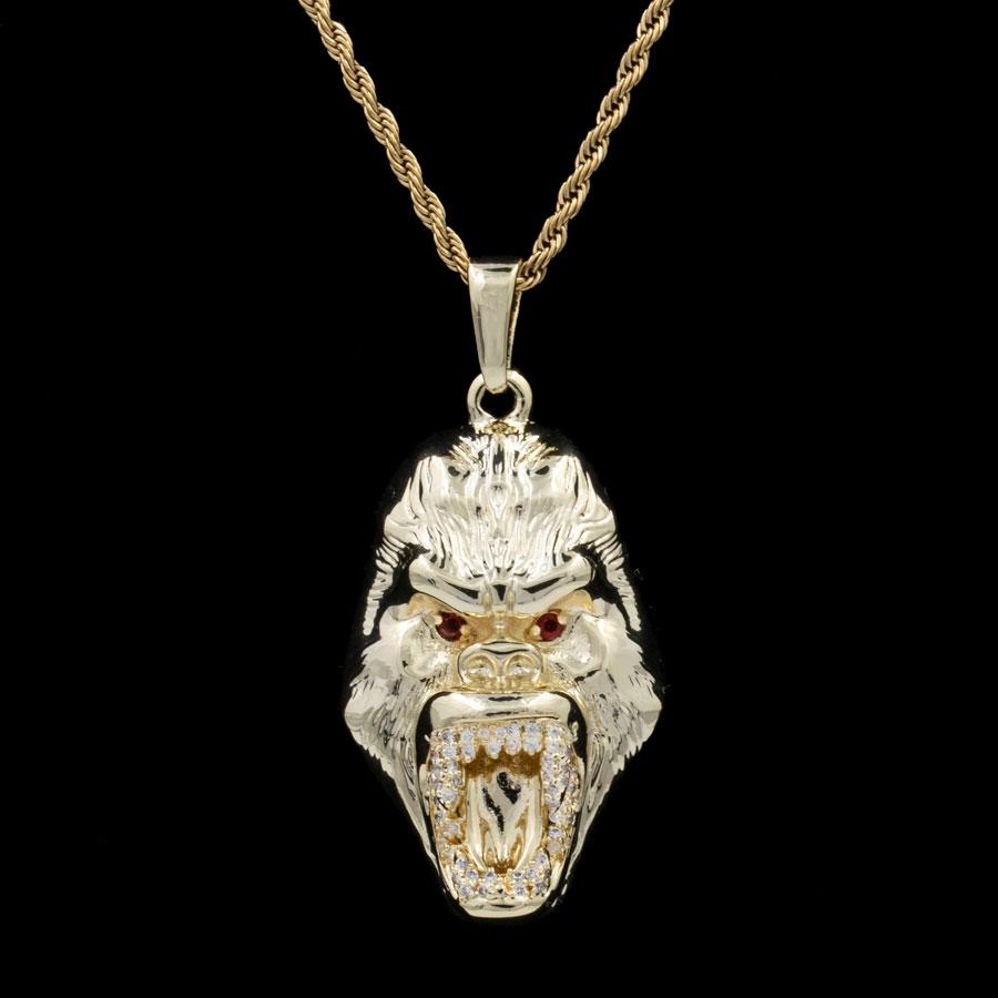 The GLD Ape represents the beast within. It's the passion, dominance and power a man can let loose. It's a stunning, bold piece that your friends will admire. We recommend pairing with a thicker, 3mm Franco Chain.